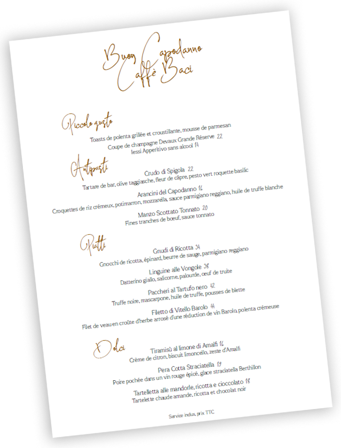 Au Caffè Baci, la cuisine est un hommage à l’Italie et à ses terroirs.